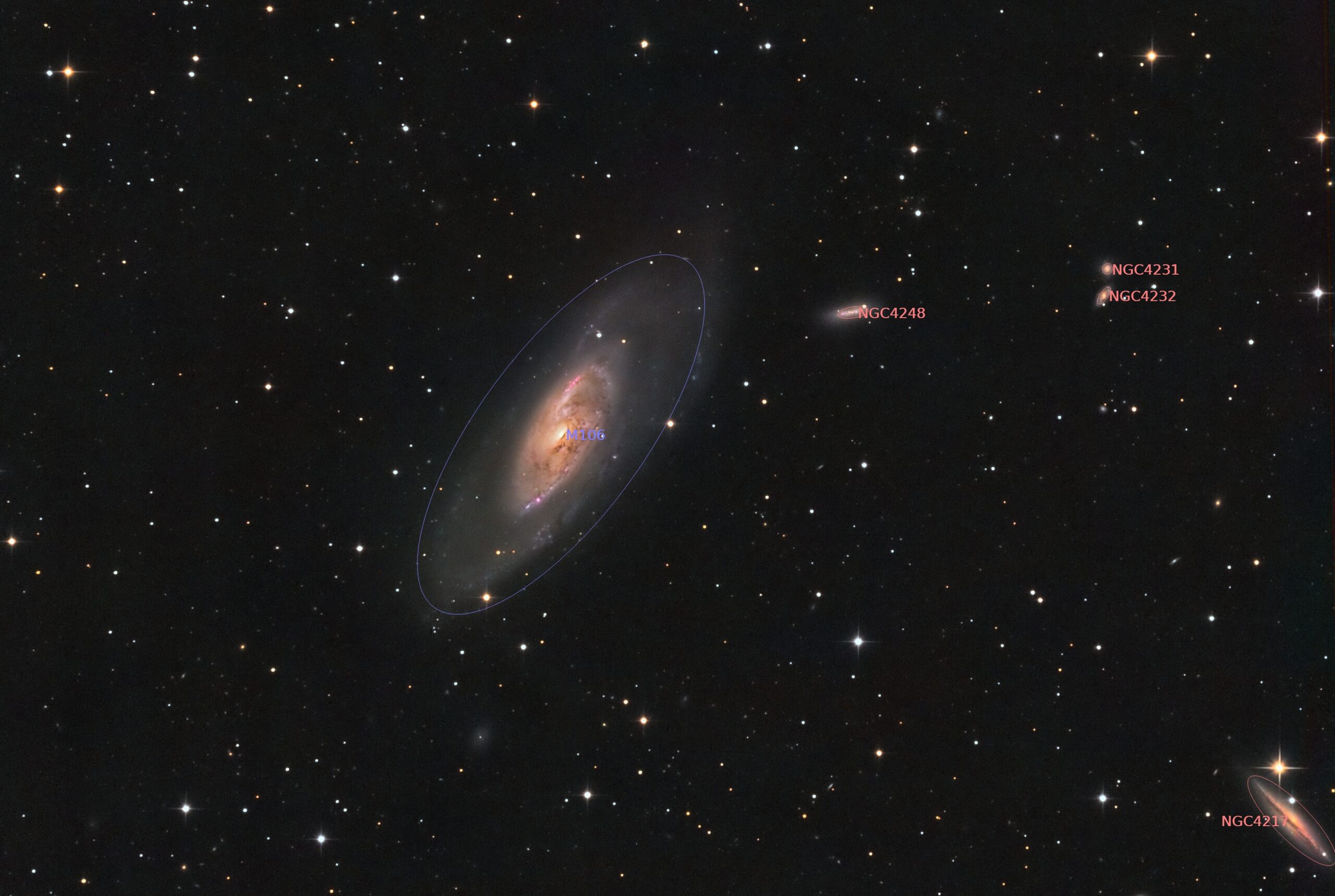 Combining my datasets from 2011 and 2014 demonstrates just how much deep integration can reveal in a galaxy like M106, where both classical spiral structure and unusual nuclear activity coexist in a single, visually impressive object.