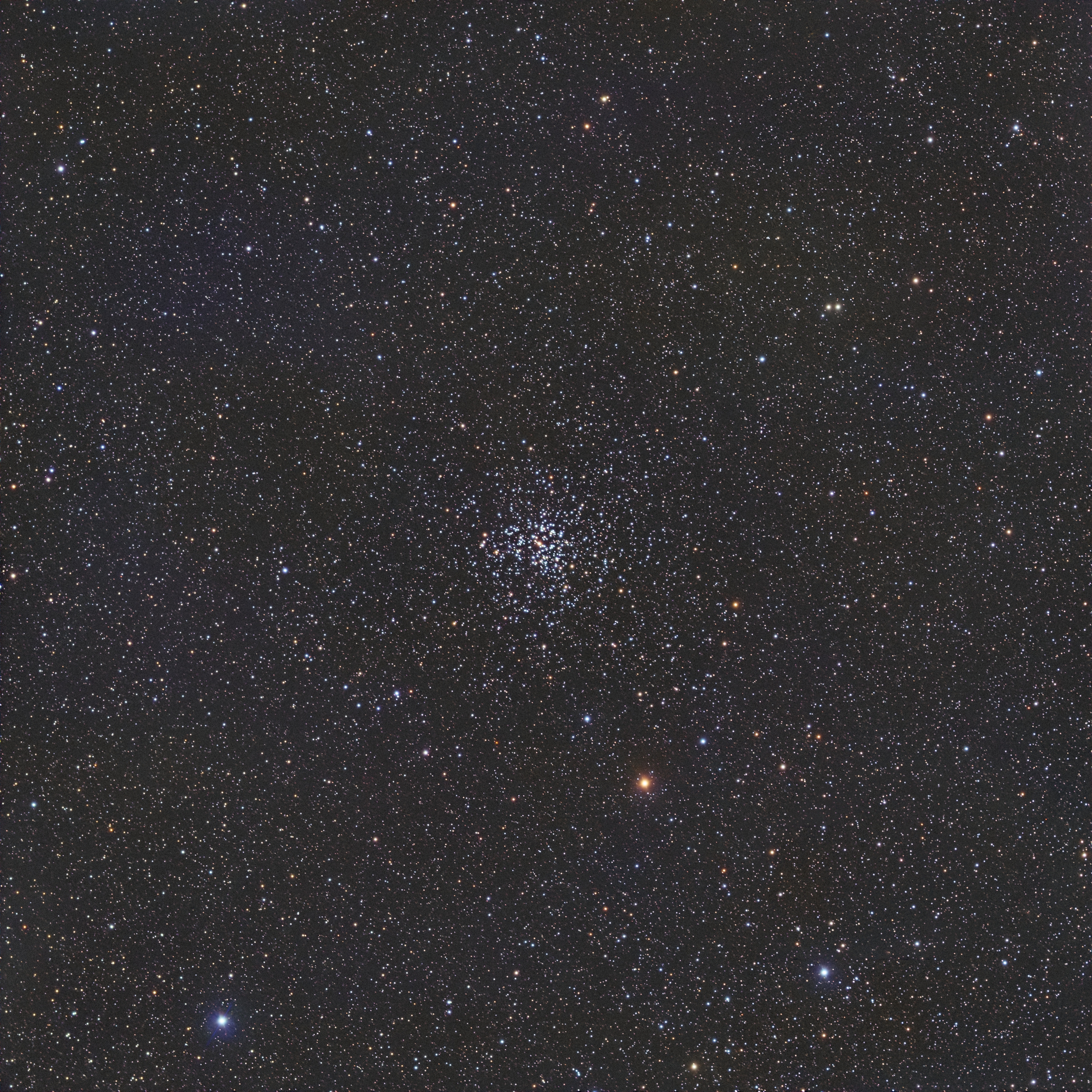 The open cluster M37 (NGC 2099) lies in the constellation Auriga and is the richest and brightest of the three Messier open clusters in this region of the sky. It forms a dense, glittering field of stars, featuring a mix of young, blue-white members and older, reddish stars, offering excellent color contrast.