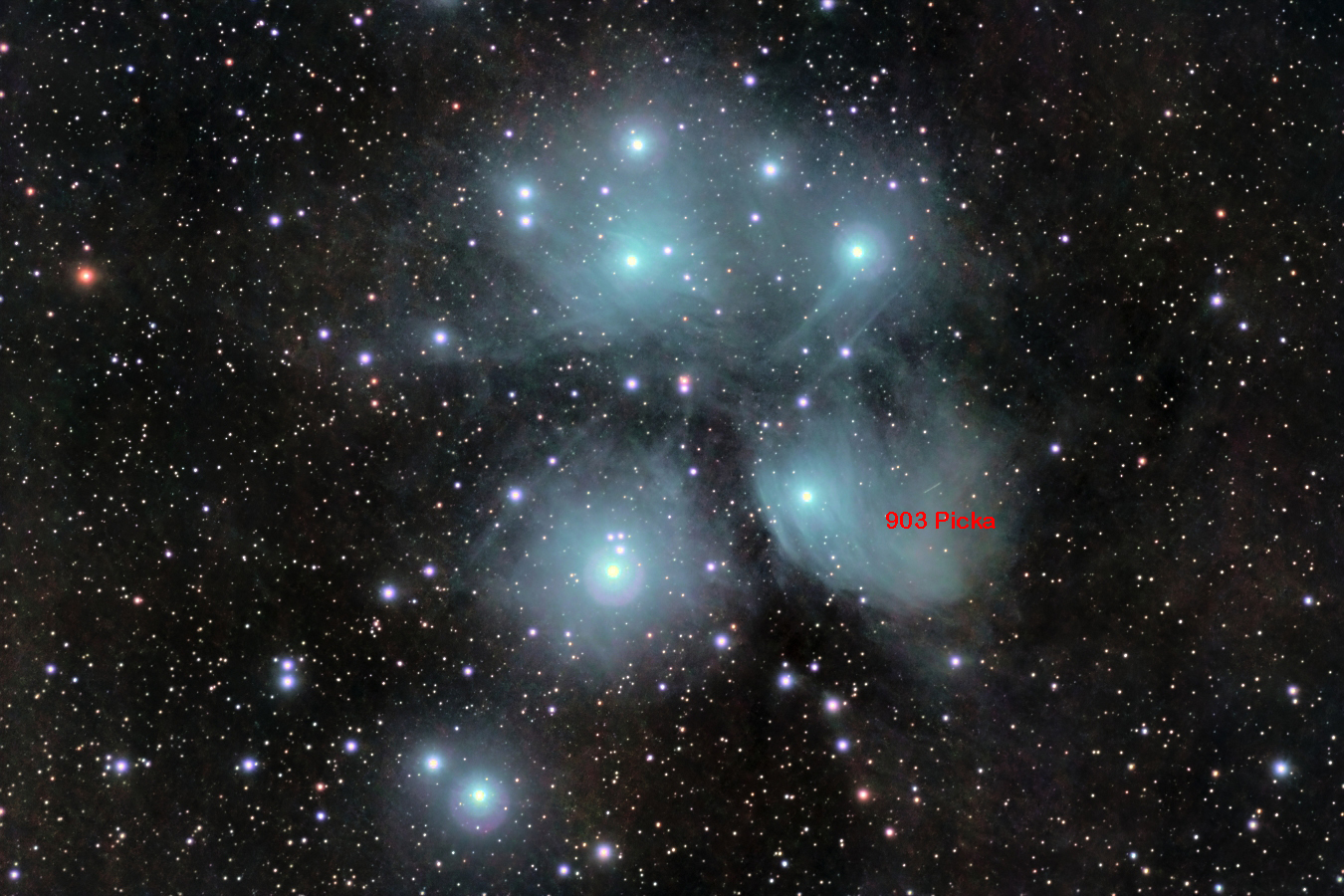 And now the image from 2010, krefeld showing Messier 45 with the asteroid 803 Picka: