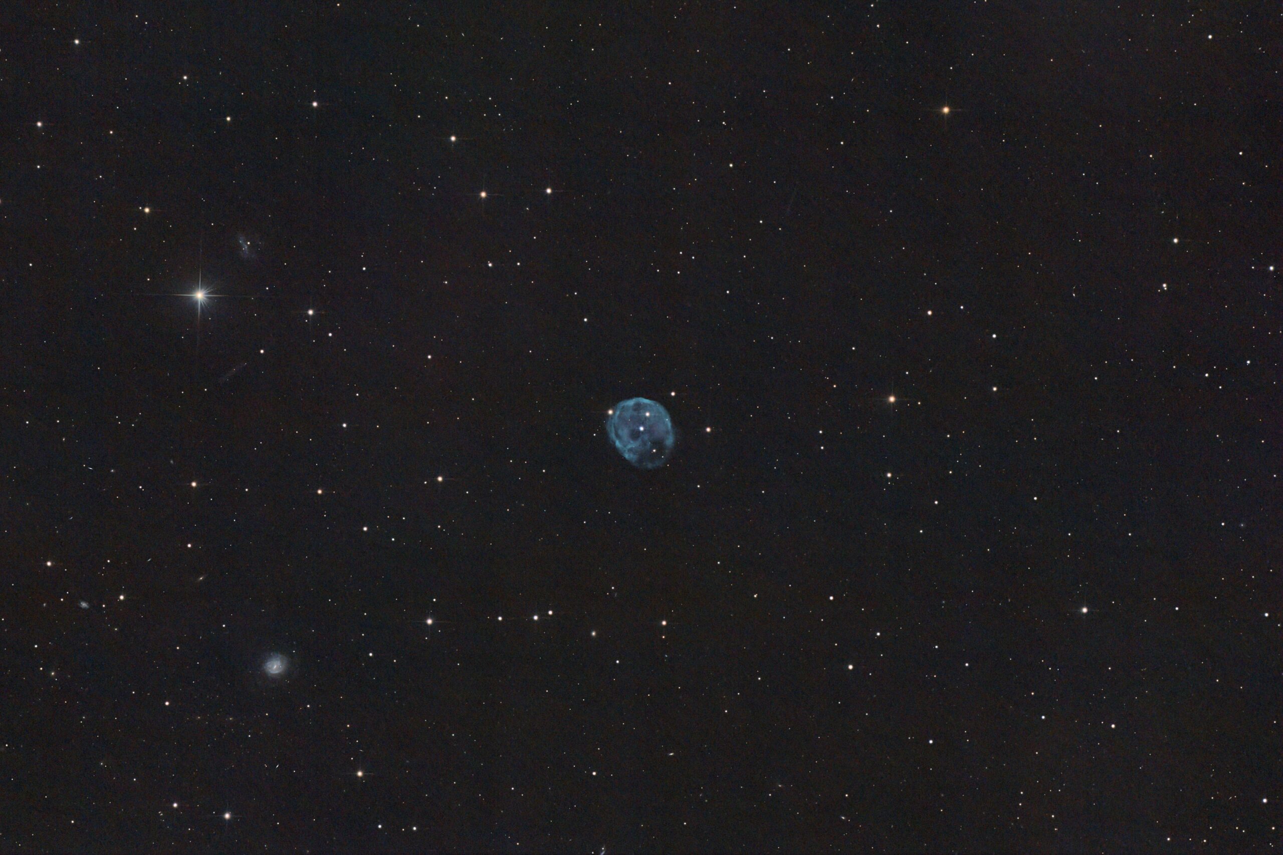 What makes this object particularly interesting is its off-center white dwarf, which, together with a close companion, forms a wide triple system—an unusual configuration for a planetary nebula and one that likely influenced its asymmetric shape. The nebula’s patchy, filamentary shell and low surface brightness make it a challenging target for amateur imaging, but the dark skies of Banon provided ideal conditions to capture its subtle outer structures. This early DSLR project remains one of my favorite wide planetary nebula images from that period.