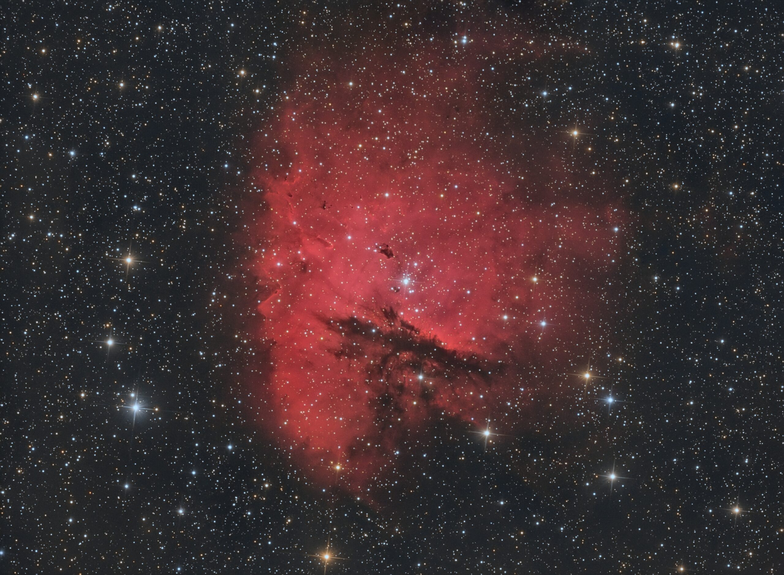 I have imaged NGC 281, also known as the Pacman Nebula, twice over the years. My first attempt dates back to 2007, during a holiday at the Emberger Alm in Austria, where I captured the object with my DSLR under beautifully dark alpine skies. The second imaging session followed in 2013 from my backyard in Krefeld, this time using my CCD camera and enhancing the dataset with H-alpha exposures to reveal the nebula’s faint outer structures and intricate emission filaments.