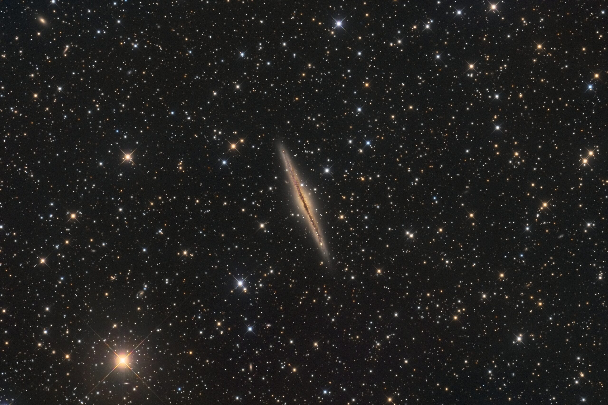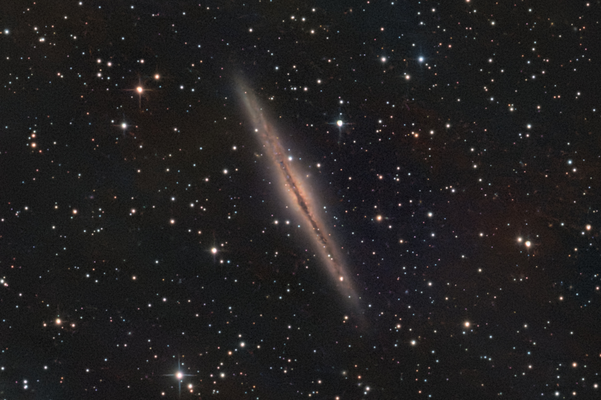Finally, in 2022, I received high-quality data of NGC 891 from Insight Observatory. With modern equipment and darker skies, this dataset revealed extraordinary fine detail: the sharply defined dust lane bisecting the galaxy, numerous foreground stars, and faint extraplanar features extending above and below the galactic plane.